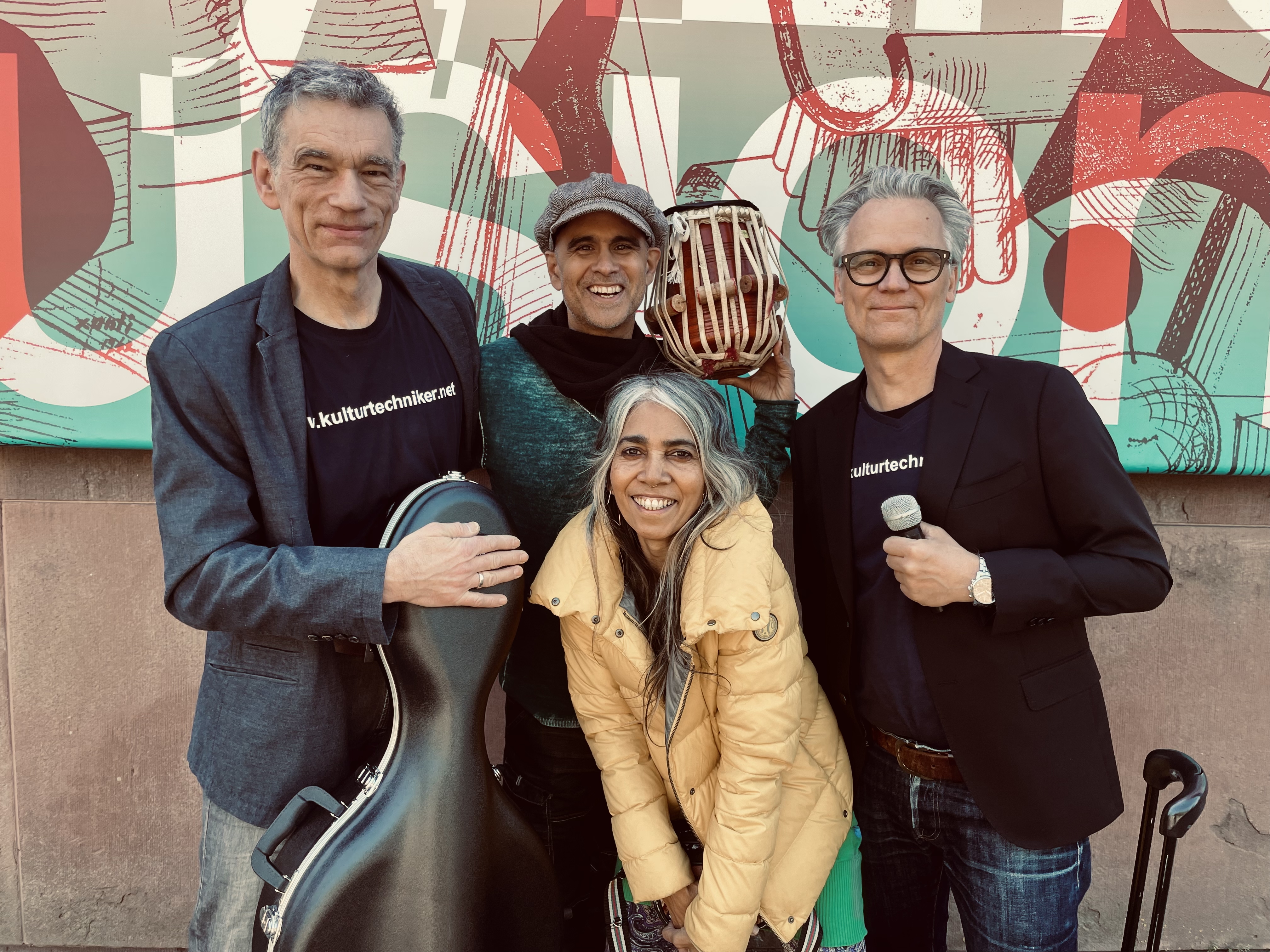 DIE KULTURTECHNIKER Ralf Werner, Raul Sengupta, Hina Sarojini, Katalin Kis-Rabota und Martin M Hahnemann am 11.07.2025 mit dem Tryout von "Faustus' Loops & Words", eine Elektronische Konzertlesung frei nach Goethes Urfaust.