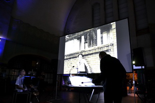 | CELLO CHILL SOUNDS (Norbert Schiffer-vibraphon, Ralf Werner-cello & loops & comp) am 12.09.2025 bei "Wuppertal24" im Bürgerbahnhof Vohwinkel.innerhalb Mark Tykwers Reihe "Movie in Motion". | CELLO CHILL SOUNDS führte eine eigene Neuvertonung (Komposition Ralf Werner) des Stummfilms "Das Abenteuer eines Journalisten" von Harry Piel aus dem Jahr 1914 auf.